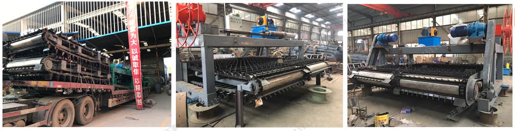 用途: 鏈板式堆肥翻拋機適用于畜禽糞便、污泥、垃圾等有機固體廢棄物的深槽好氧堆肥。該機沿發酵槽軌道行走作業,其高效率翻拋作業有利于加快發酵槽內物料發酵腐熟、降低水分和提高堆肥品質。該機系列規格可滿足多種發酵槽寬度。